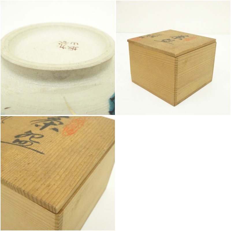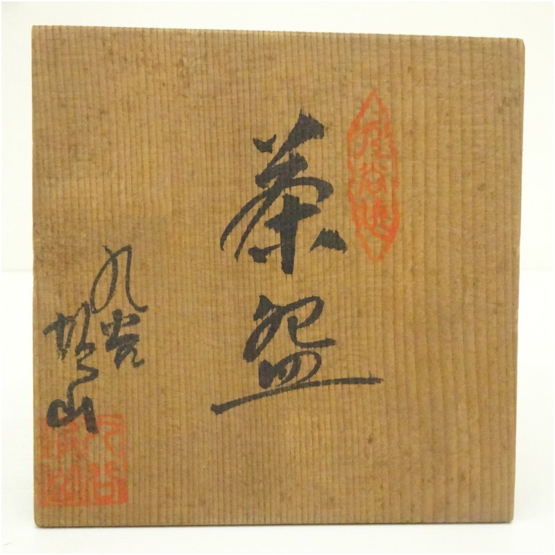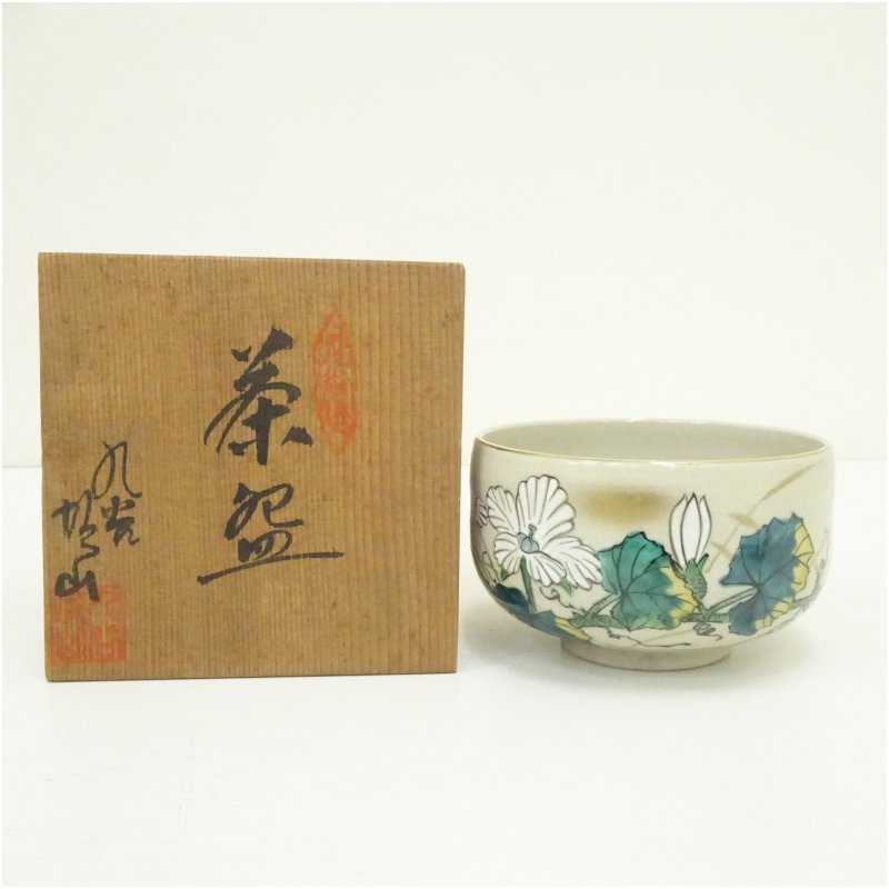 九谷焼 坂山造 色絵草花茶碗(共箱)