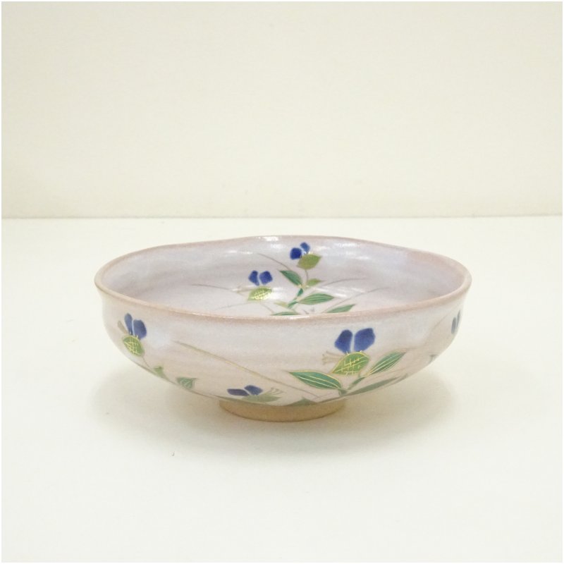 京焼 橋本紫雲造 白釉露草文茶碗(共箱)