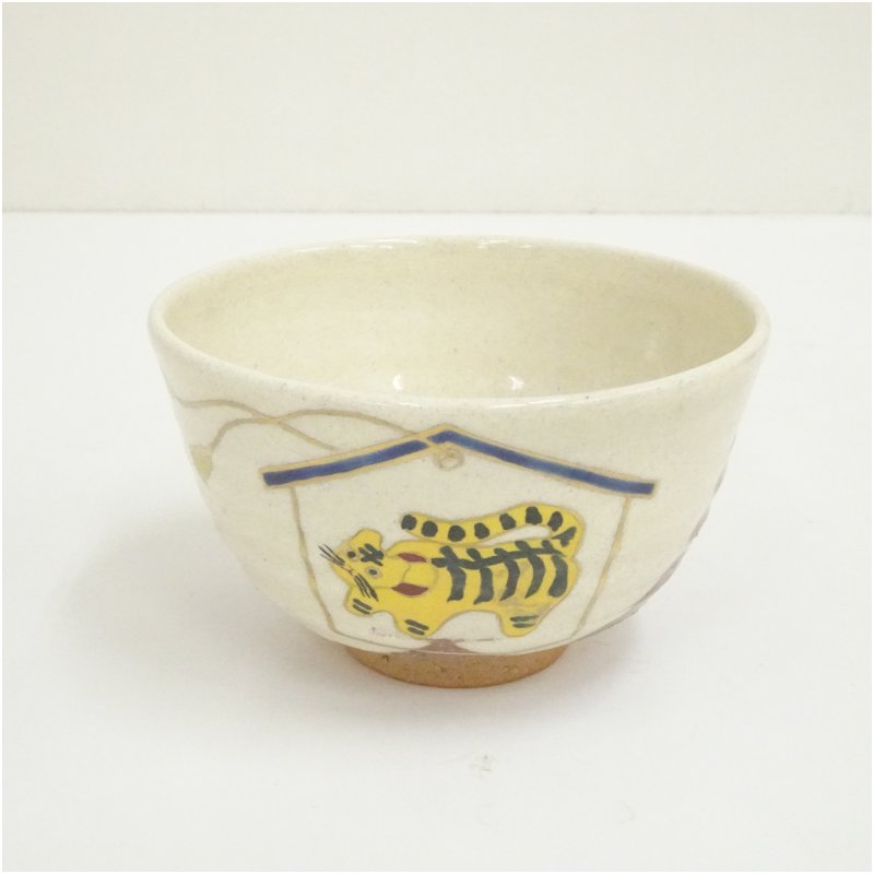 奥村孝山造 色絵干支寅茶碗(箱付) [13-251031d-002a]