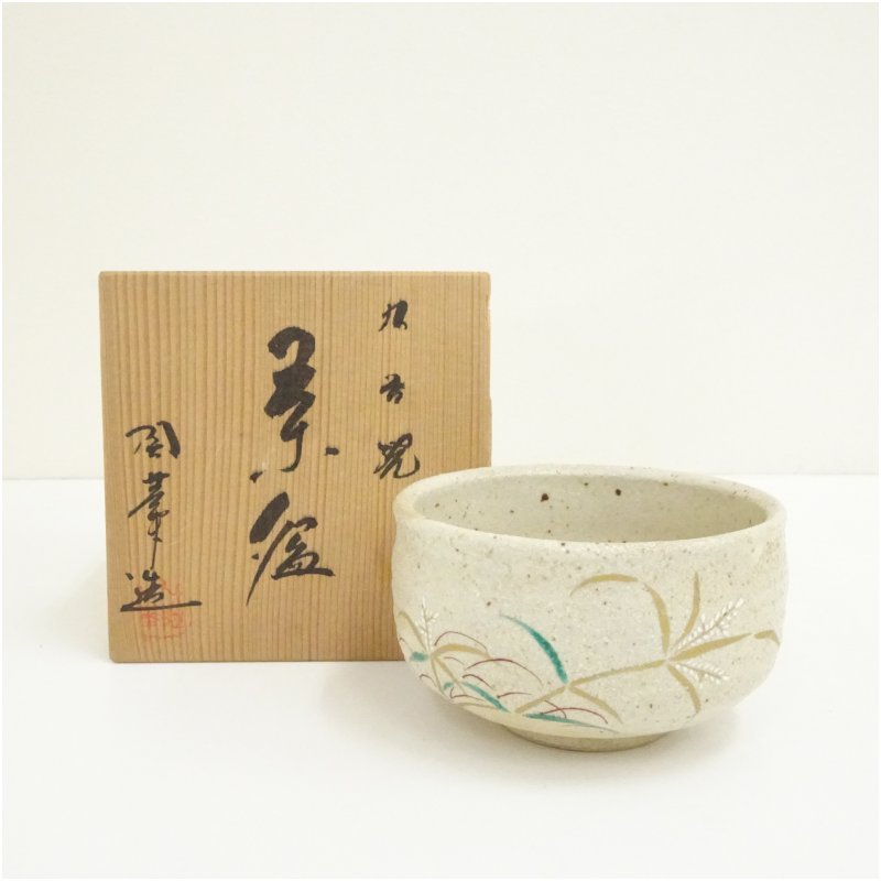九谷焼 土用珠峰造 色絵秋草茶碗(保護箱)