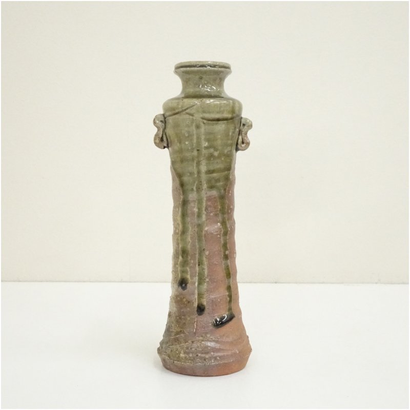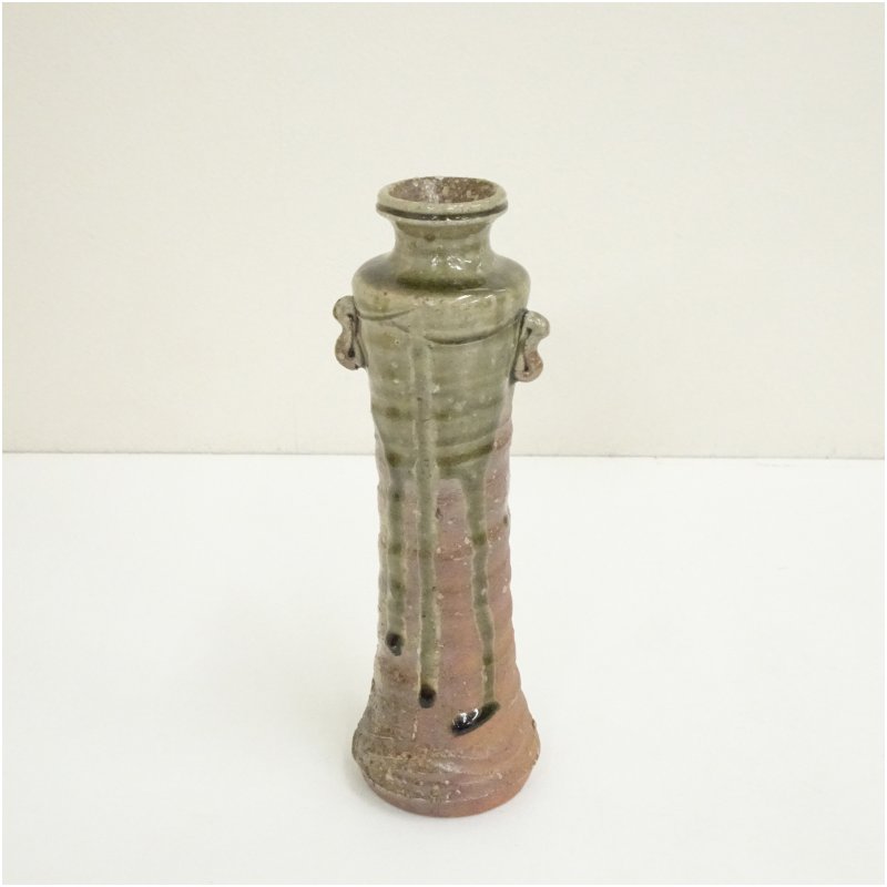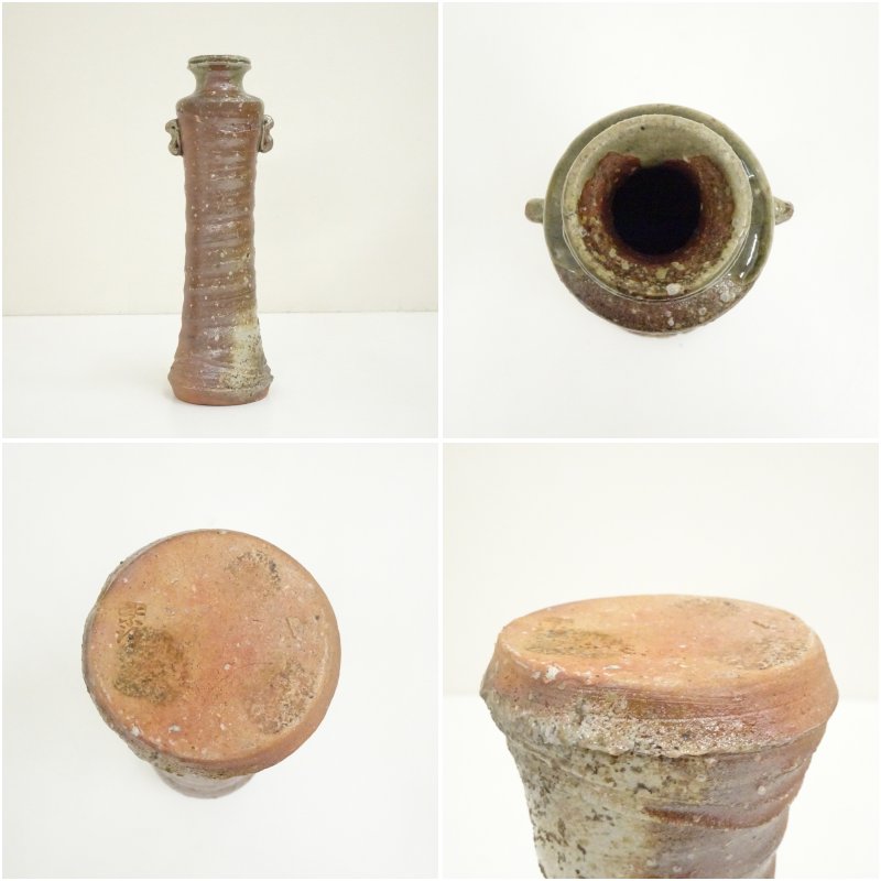 信楽焼 紫行造 耳付茶花入(共箱) [13-251031d-012a]