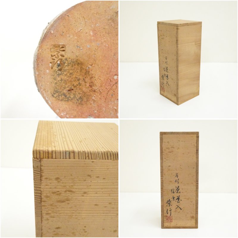 信楽焼 紫行造 耳付茶花入(共箱)