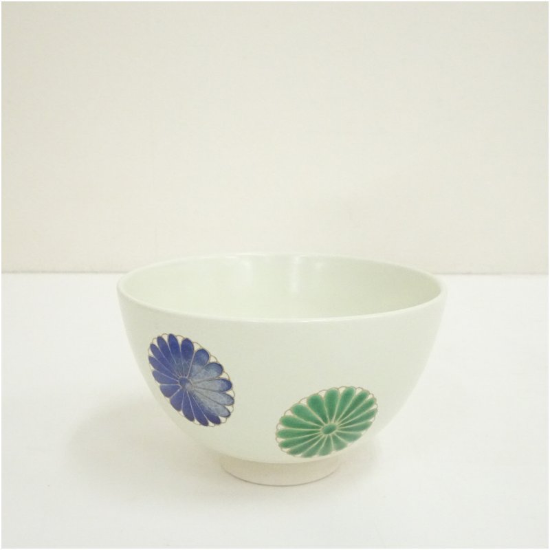 竜仙造 色絵御所菊文茶碗(保護箱)