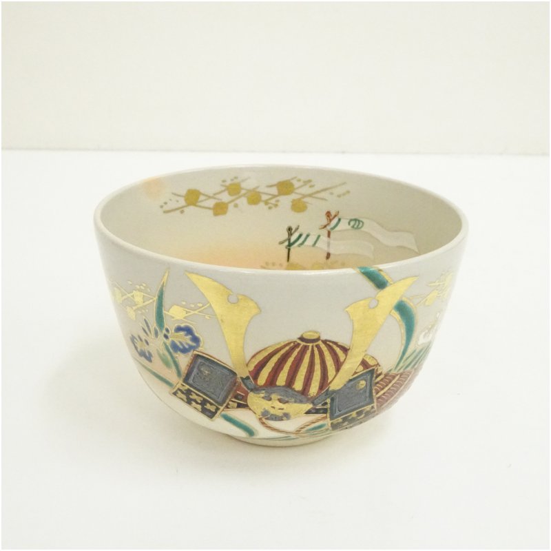 京焼 鳴滝窯 橋本城岳造 仁清写兜文茶碗(共箱) [13-251031d-034a]