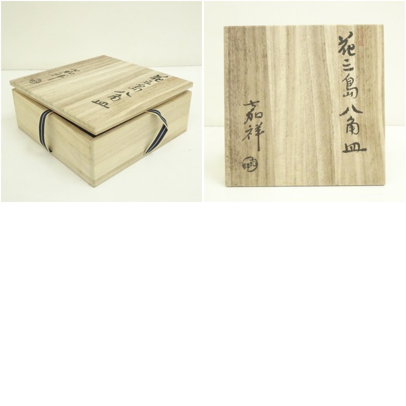 京焼 森岡嘉祥造 花三島八角皿(共箱)