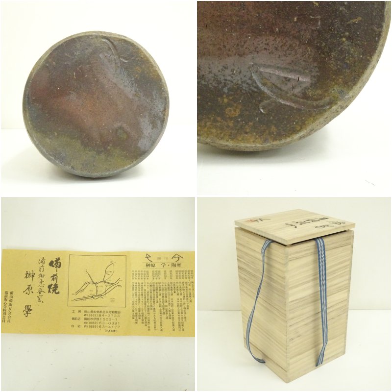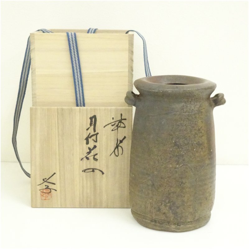 備前焼 榊原学造 耳付花入(共箱) [13-251031e-006a]