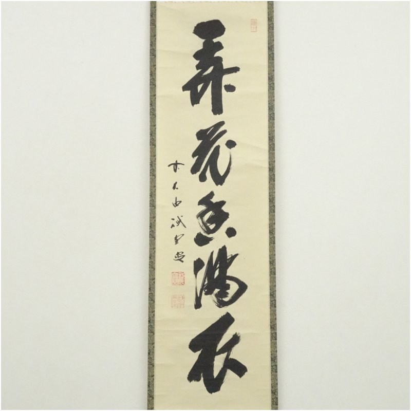 前大徳 藤井誡堂筆 「弄花香満之」一行書 肉筆紙本掛軸(共箱) [13-251104c-018a]