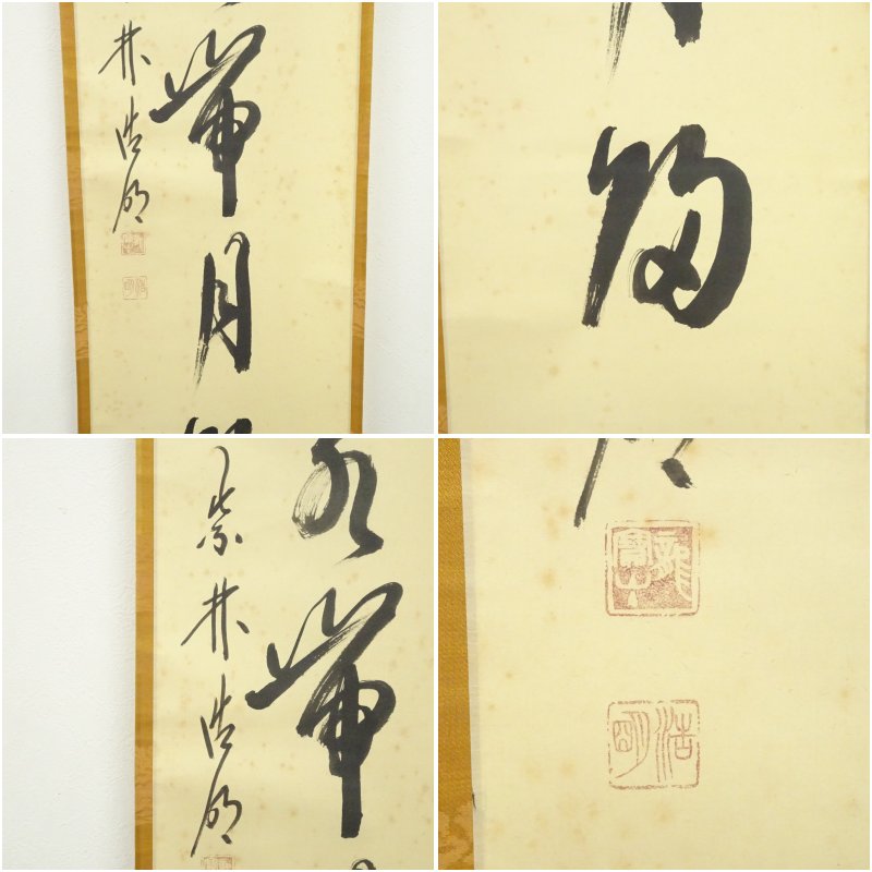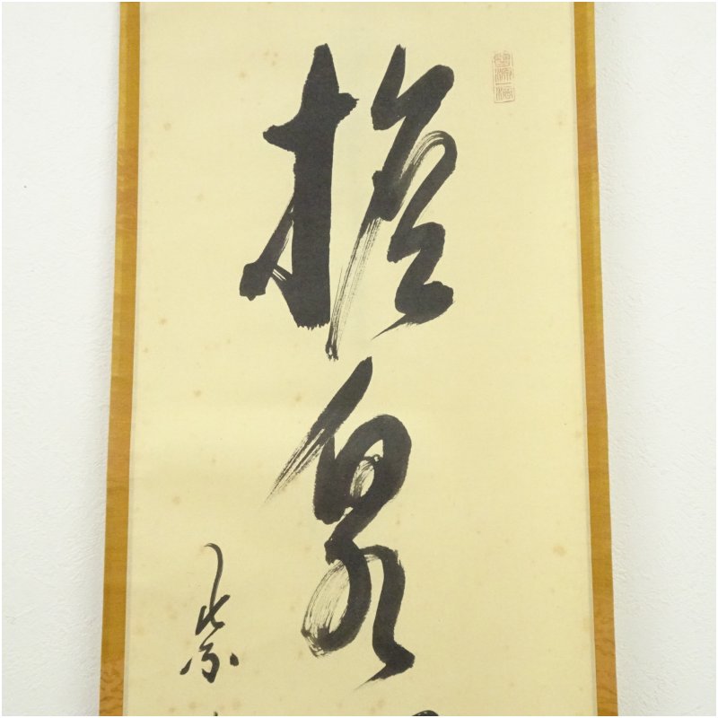 大徳寺 方谷浩明筆 「担泉帯月帰」一行書 肉筆紙本掛軸(共箱)