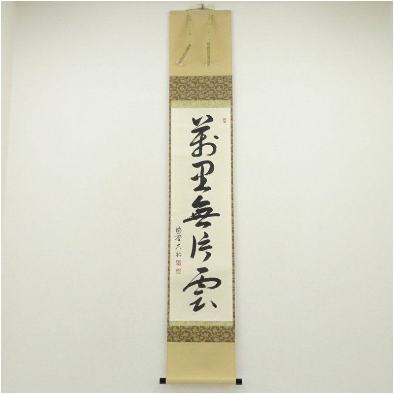 大徳寺 山岸久祐筆 「萬里無片雲」一行書 肉筆紙本掛軸(共箱) [13-251104c-027a]