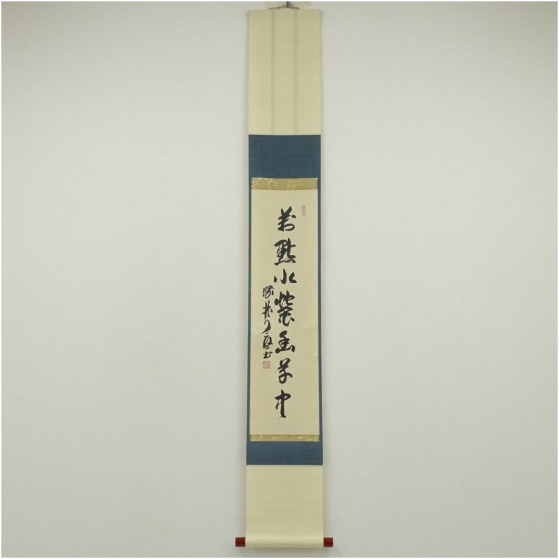 大徳寺 橘宗義(了庵)筆 「萬点水蛍幽草中」一行書 肉筆紙本掛軸(共箱) [14-251104c-048a]