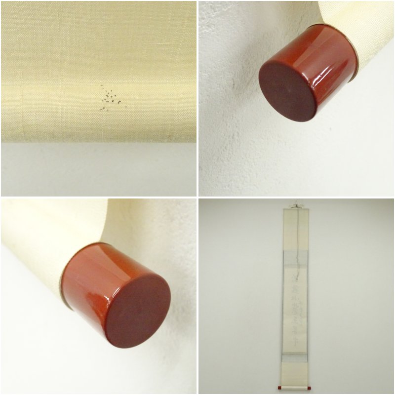 表具:軸棒表面に黒い汚れが数点あります。裏面上部に薄いシミと汚れが少しあります。