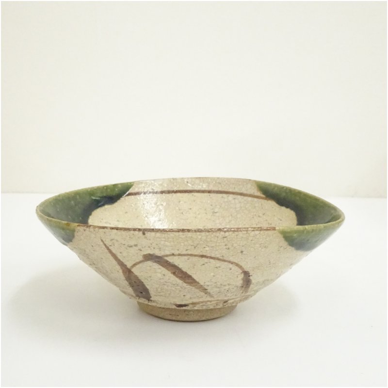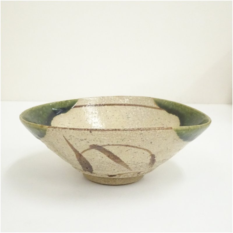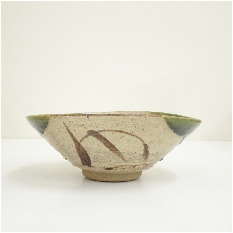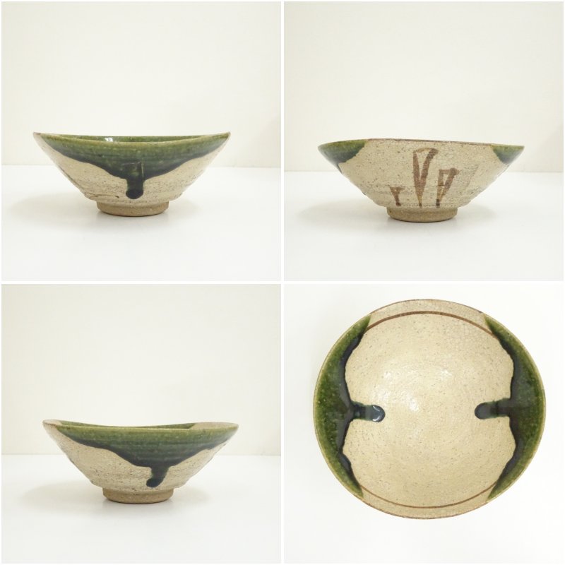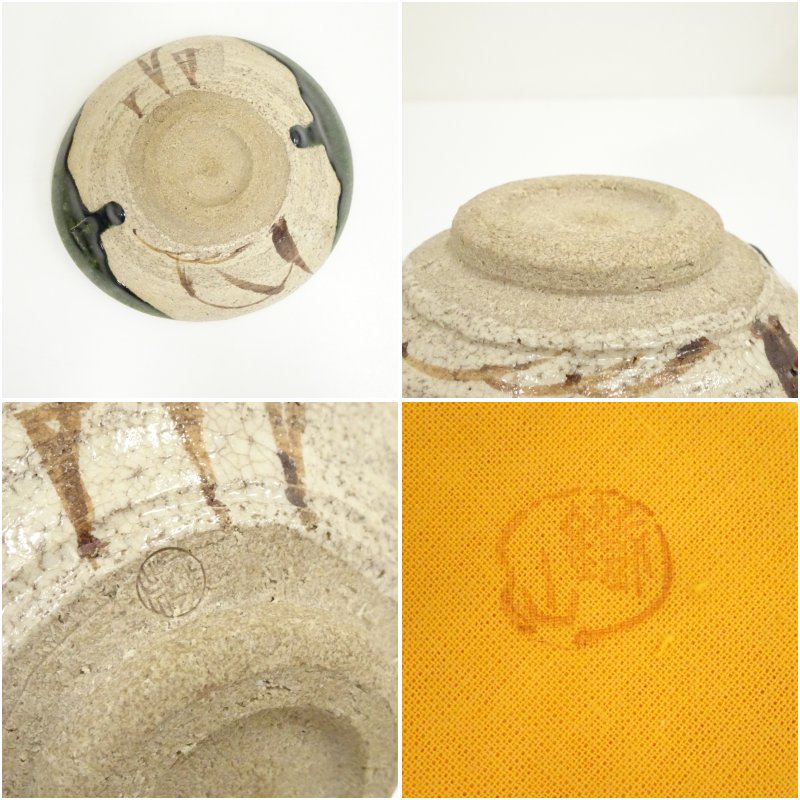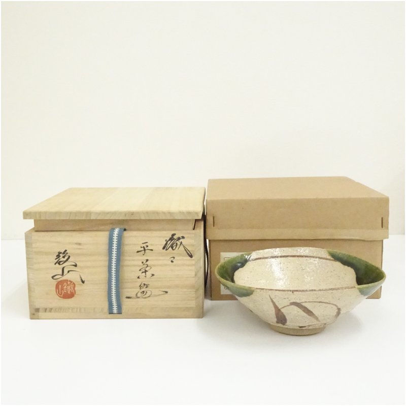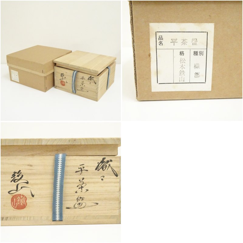 松本鉄山造 織部平茶碗(共箱) [13-251104e-002a]