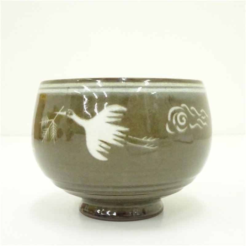 高田焼 十一代 上野才助造 象嵌茶碗(共箱)