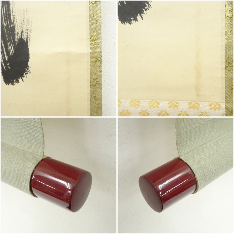 本紙と表具裏面にところどころシミがあり、巻き皺による折れが少しあります。