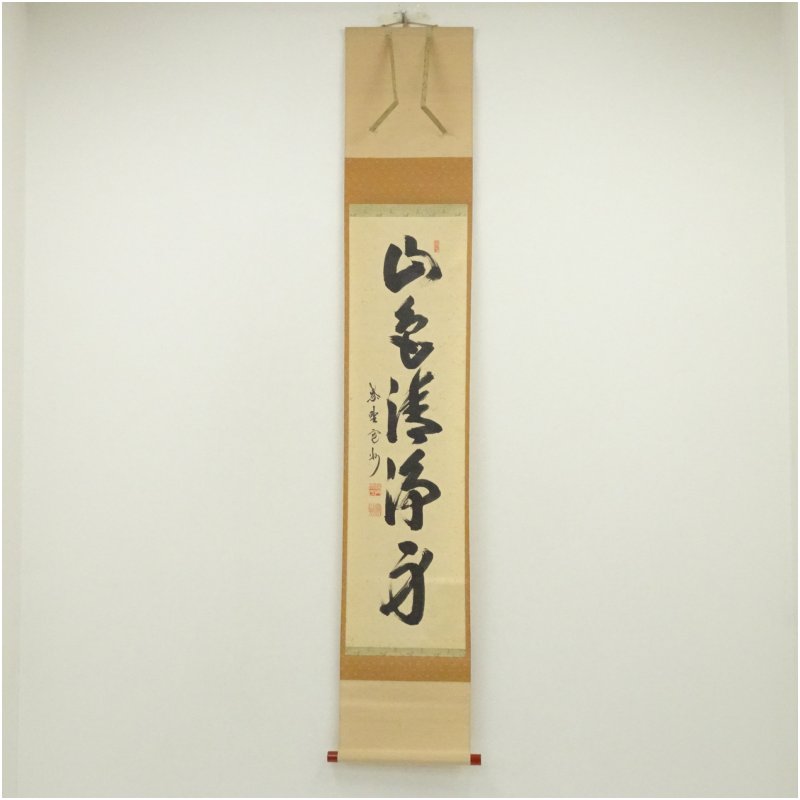 大徳寺 長谷川寛州筆 「山色清浄身」一行書 肉筆紙本掛軸(共箱) [13-251105c-025a]