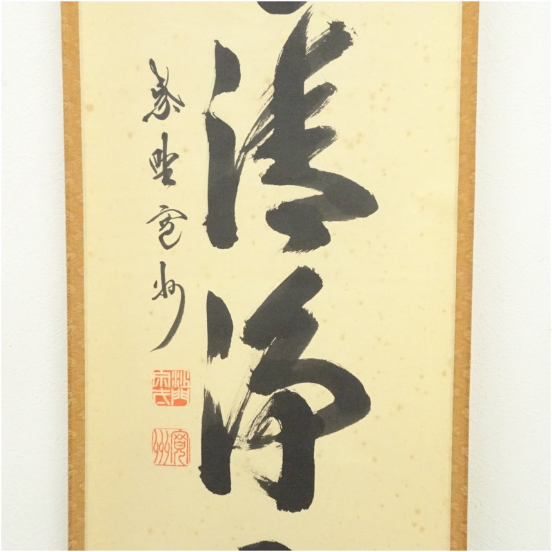 大徳寺 長谷川寛州筆 「山色清浄身」一行書 肉筆紙本掛軸(共箱)