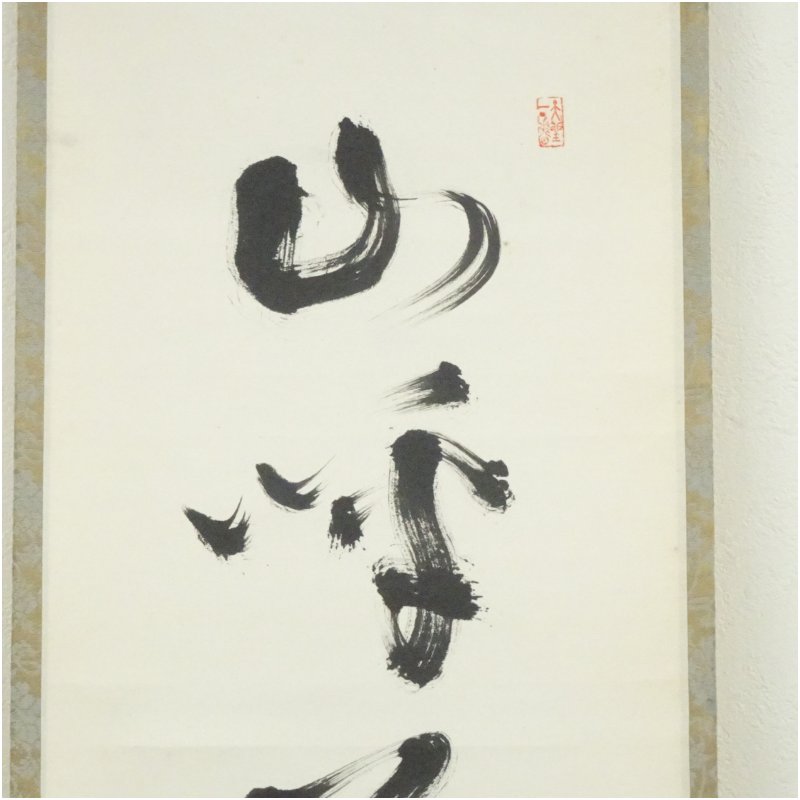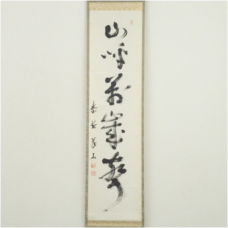 大徳寺 上田義山筆 「山呼萬歳聲」一行書 肉筆紙本掛軸(保護箱) [13-251105c-026a]