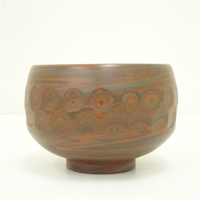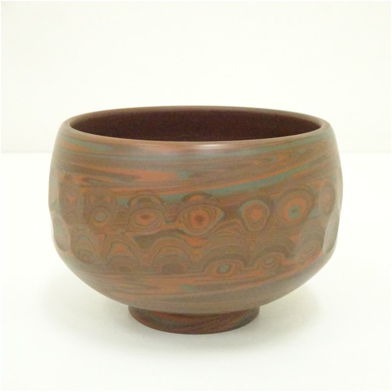 常滑焼 作家物 練上茶碗(箱付) [13-250616c-027a]