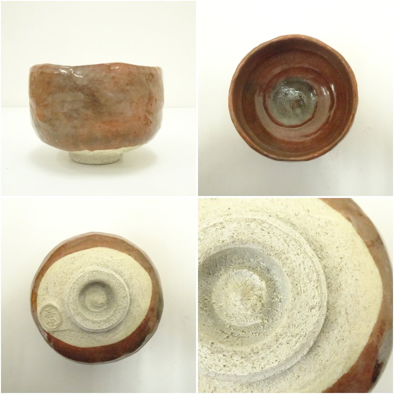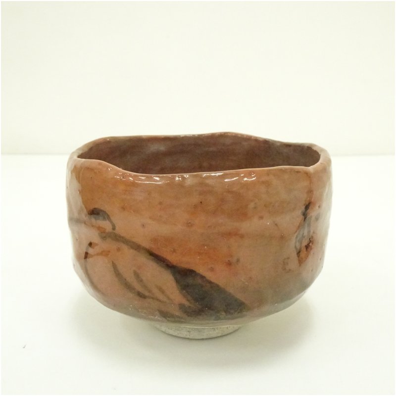 京焼 春悦造 柳甫筆 鶴図赤楽茶碗(書付有)(共箱) [13-251106d-005a]