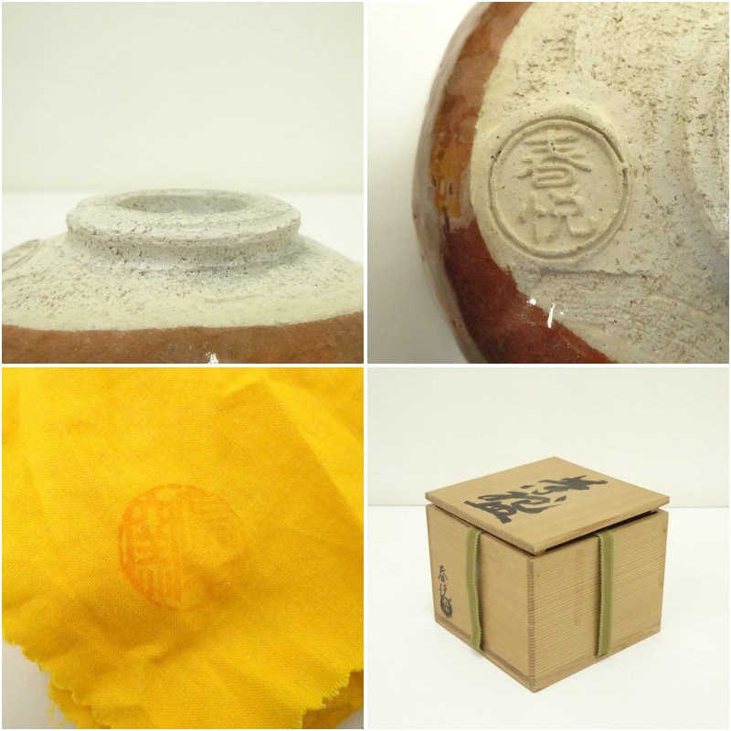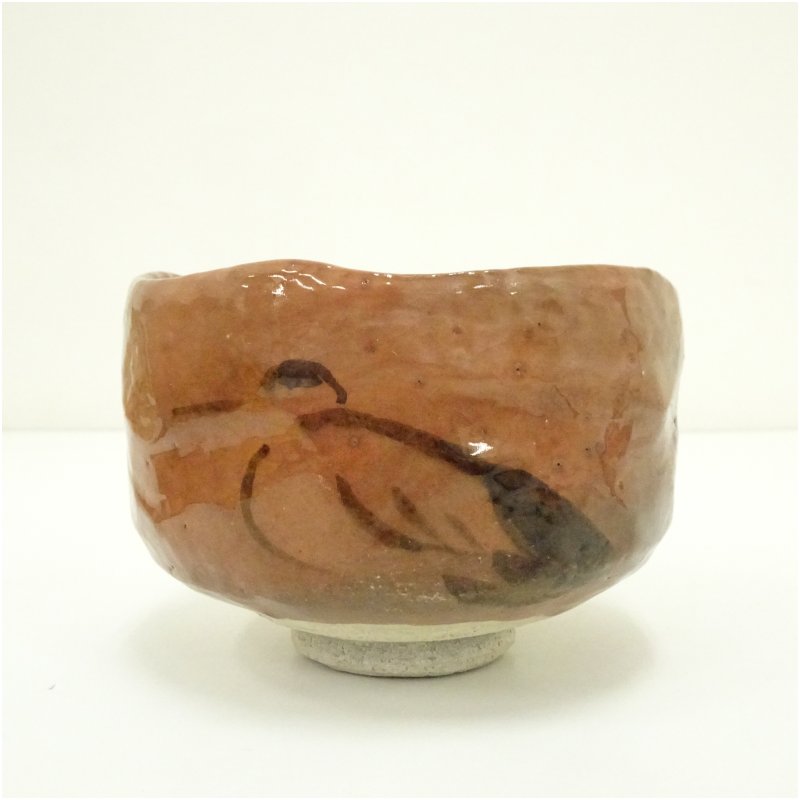 京焼 春悦造 柳甫筆 鶴図赤楽茶碗(書付有)(共箱)