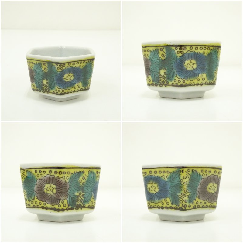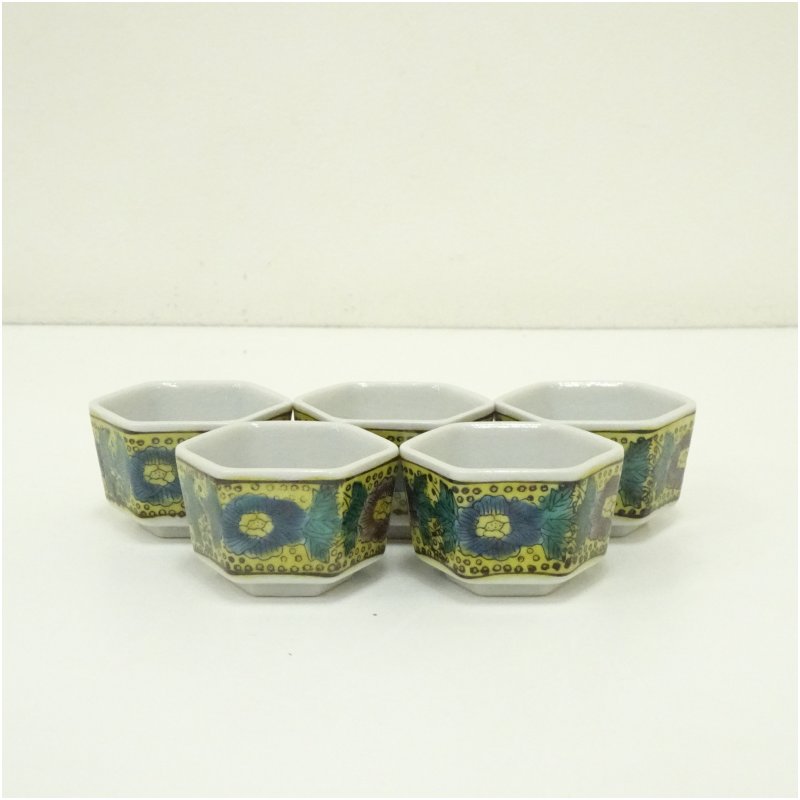 九谷焼 玉峰造 六角牡丹文酒器揃(共箱) [13-251106d-016a]
