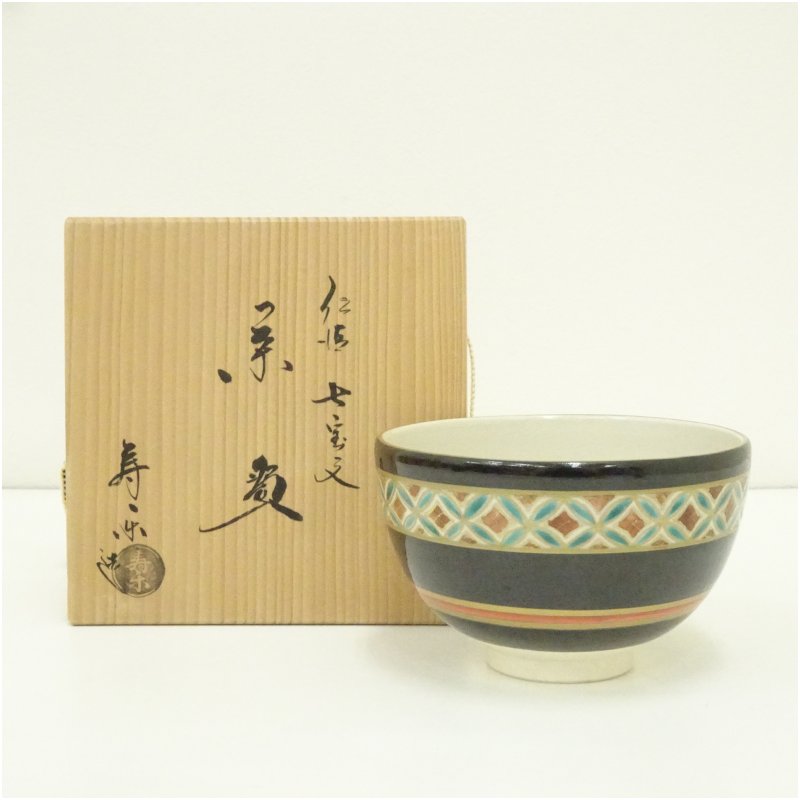 京焼 川添寿楽造 仁清七宝文茶碗(共箱)