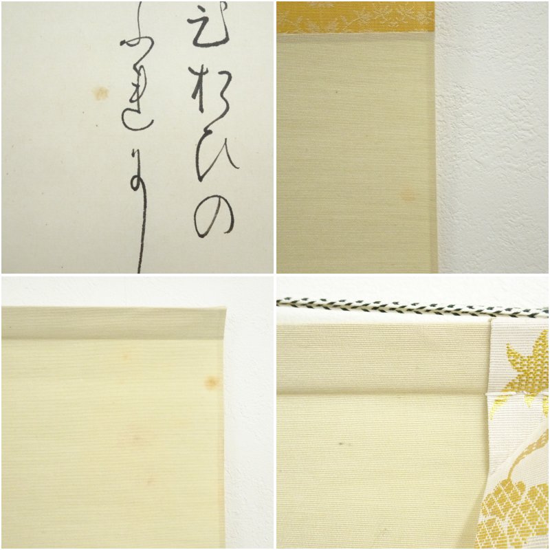 表具:表面上下部に大きな薄いシミがあり、上部に数点の小さな汚れがあります。裏面にところどころ大きなシミがあります。