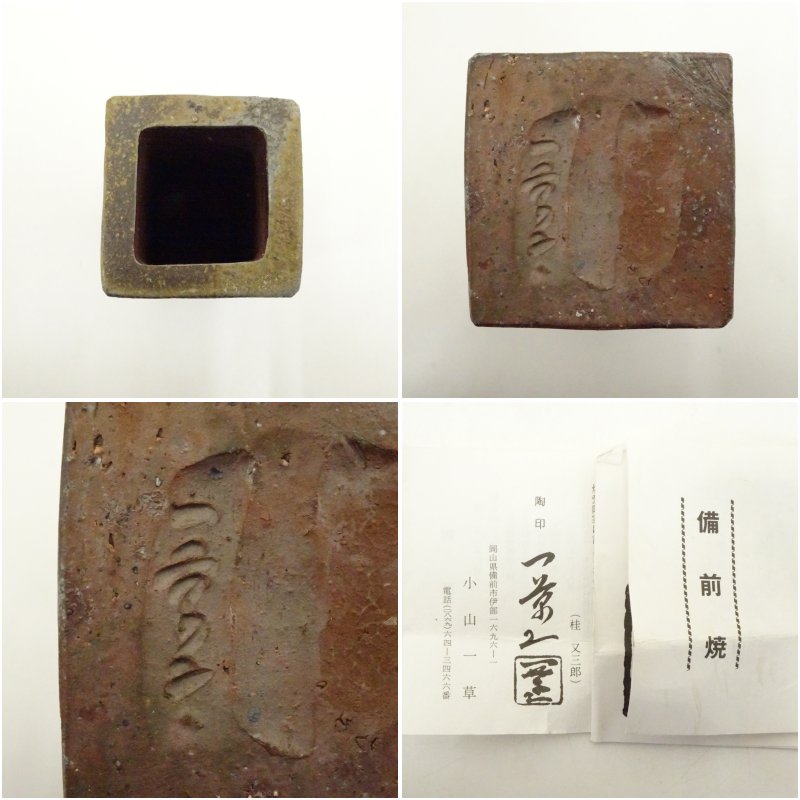 備前焼 小山一草造 四方花入(共箱) [13-251110e-023a]