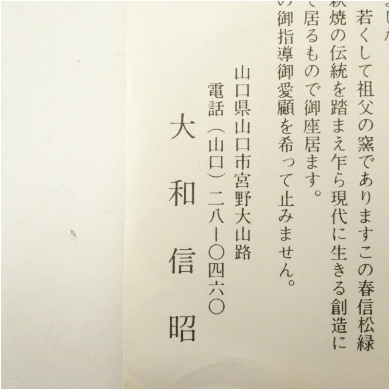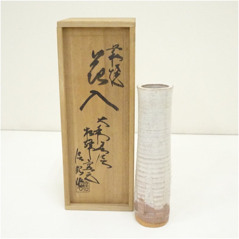 萩焼 大和春信松緑窯 大和信昭造 花入(共箱)