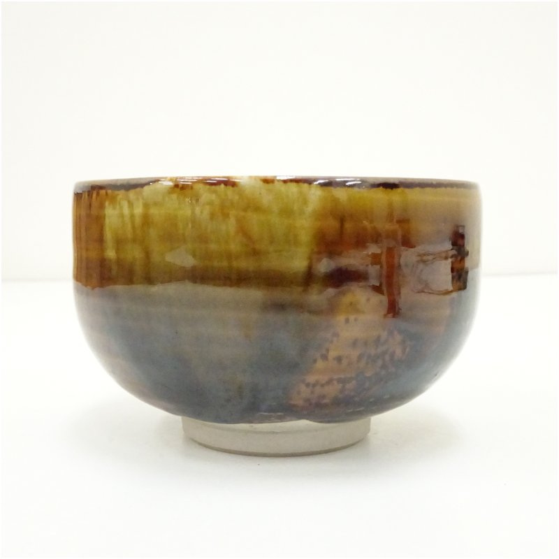 九谷焼 永泉造 色絵松竹梅文掛分茶碗 [13-251110e-031a]