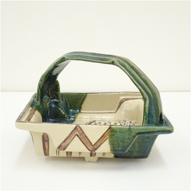 大萱窯 加藤弥右衛門造 織部手鉢(共箱)