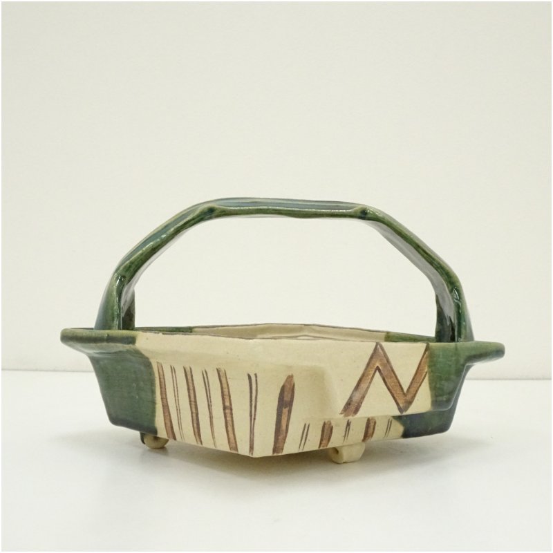 大萱窯 加藤弥右衛門造 織部手鉢(共箱) [13-251110e-039a]