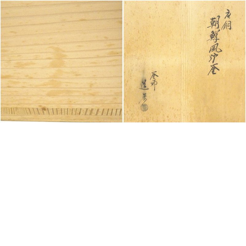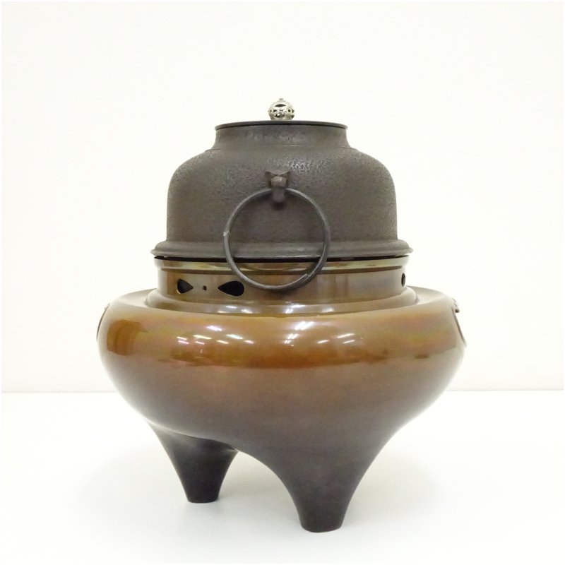 釜師 道彦造 唐銅朝鮮風炉釜(銀ツマミ)(共箱)