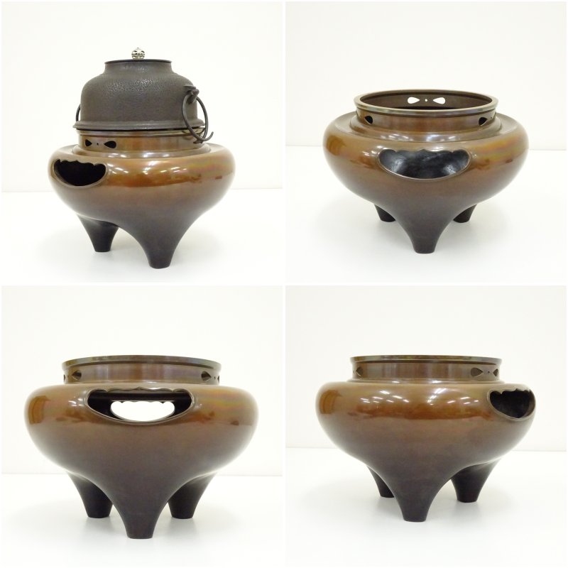 風炉:内側に緑青があり、ところどころに擦れや汚れがあります。