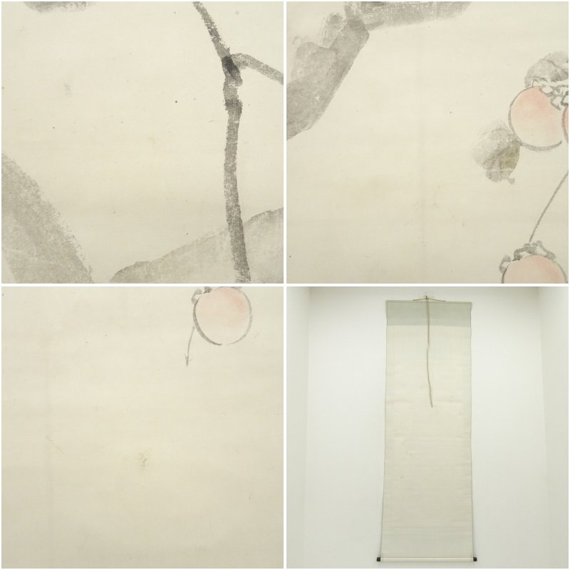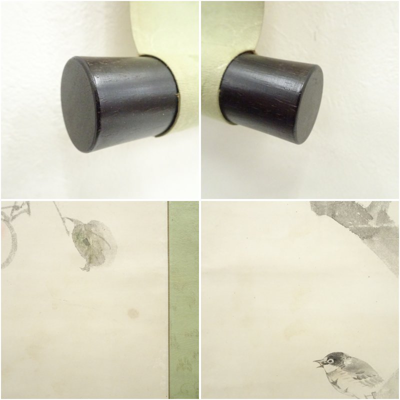 田中雪渓筆 柿に鳥 肉筆紙本掛軸(保護箱) [14-251111c-007a]
