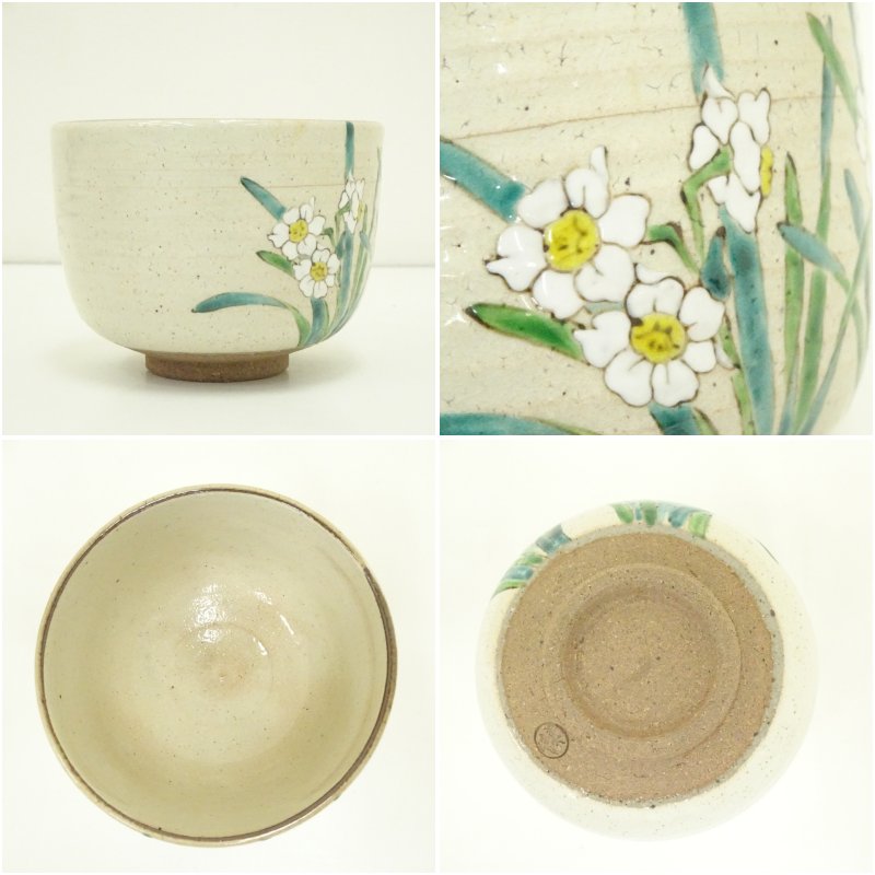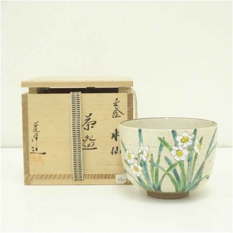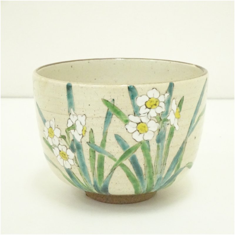 京焼 橋本美峰造 色絵水仙茶碗(共箱) [13-250616c-049a]
