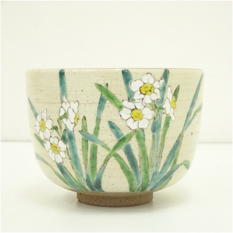 京焼 橋本美峰造 色絵水仙茶碗(共箱)