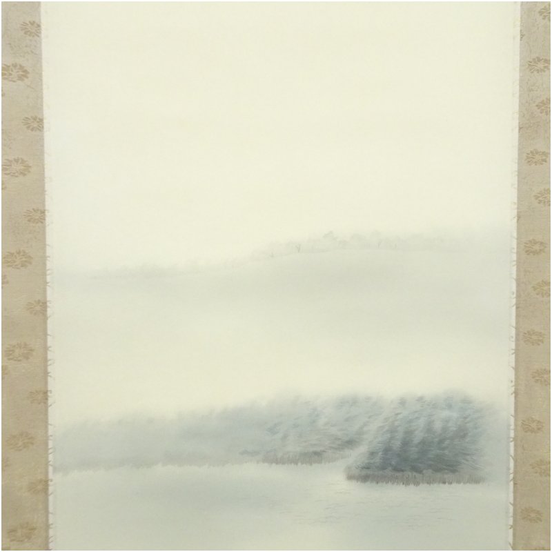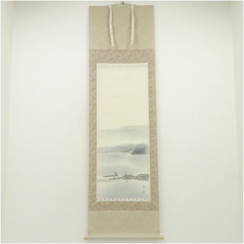 市来昭三筆 彩色山水 肉筆絹本掛軸(共箱) [01-251112c-011a]