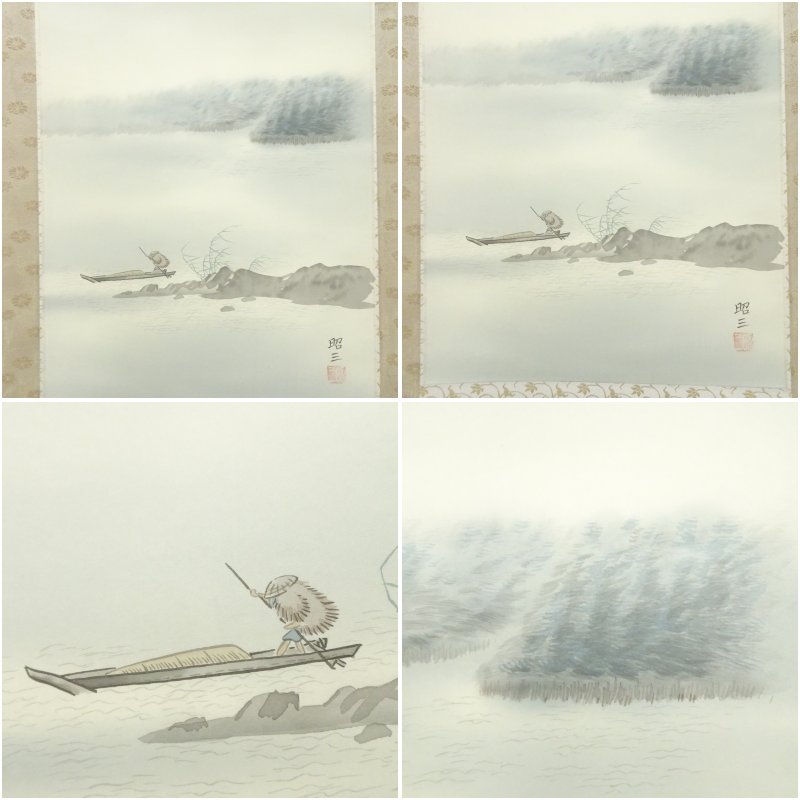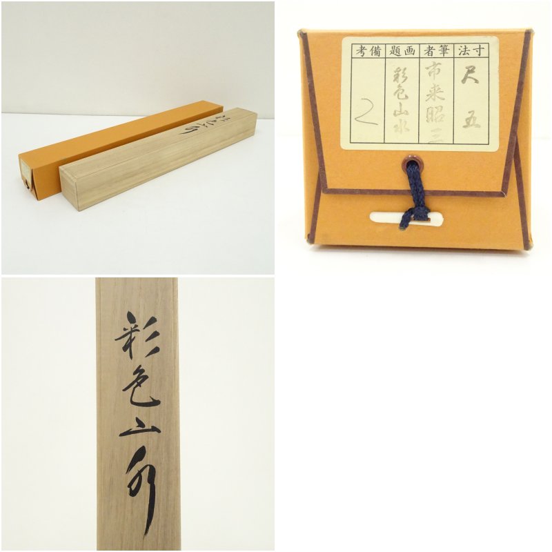 市来昭三筆 彩色山水 肉筆絹本掛軸(共箱)