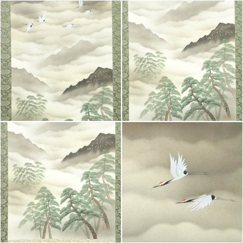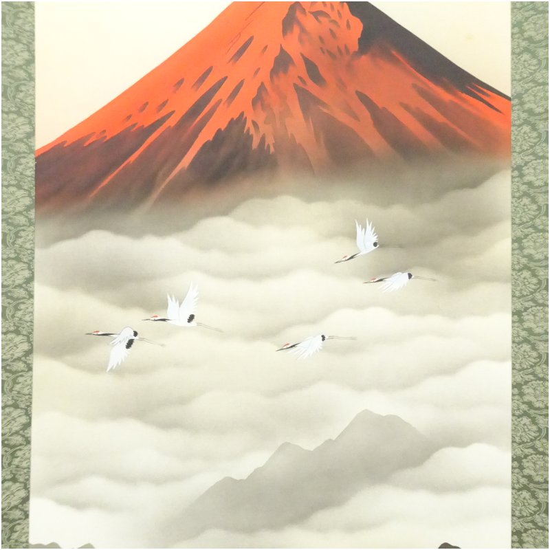 松原正峰筆 紅富士 肉筆絹本掛軸(共箱) [01-251112c-013b]