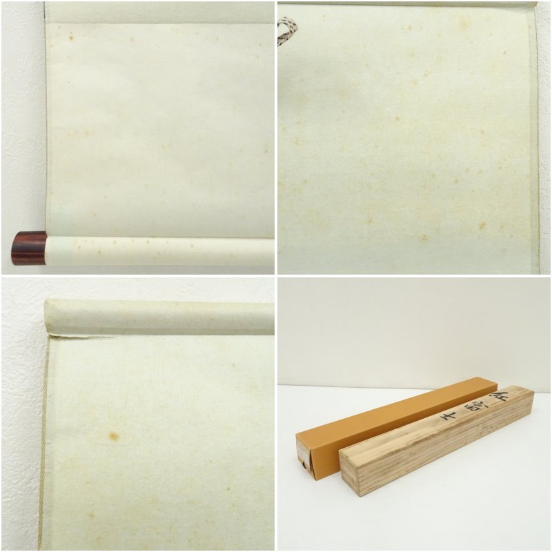 表具:表面にごく薄いシミが数点あります。裏面全体にシミがあります。八双片方に破れがあります。