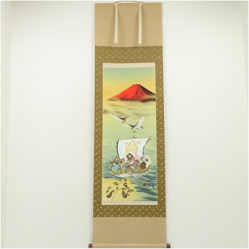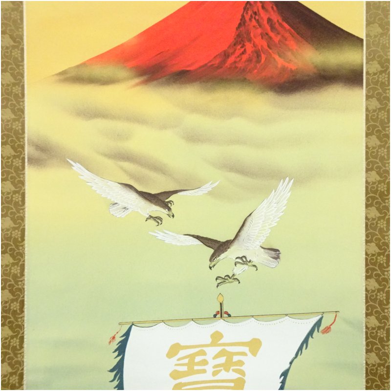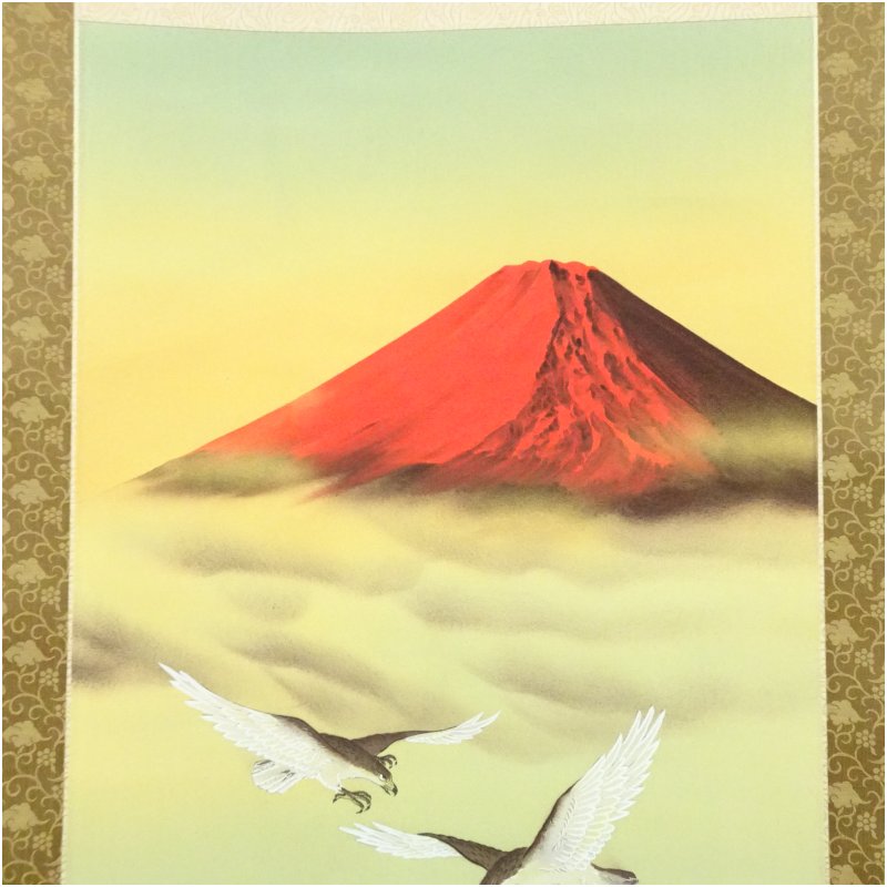 玉峰筆 霊峰縁起之図 肉筆絹本掛軸(共箱) [01-251112c-014a]