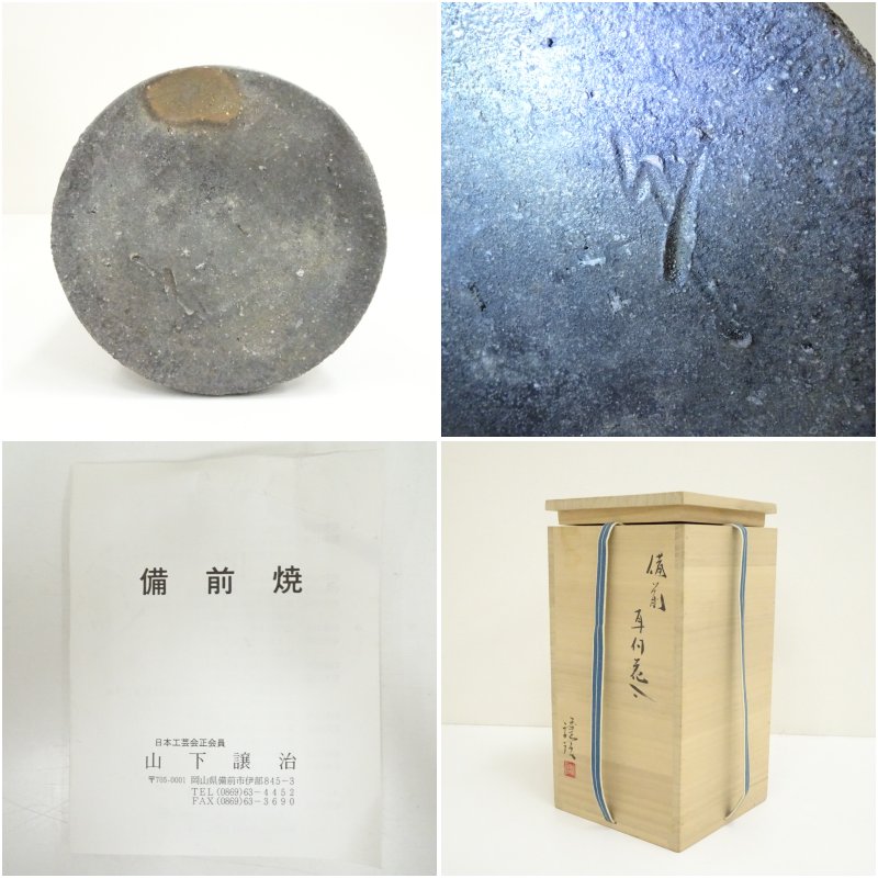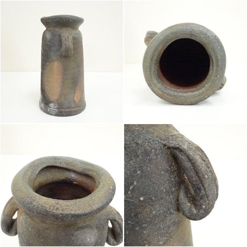 備前焼 山下譲治造 耳付花入(共箱) [13-251112c-042a]