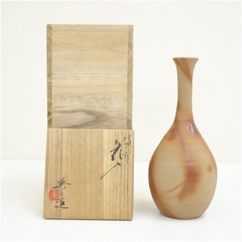備前焼 松井與之造 花入(共箱) [13-251112c-055a]