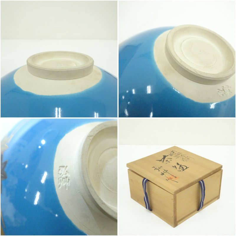 京焼 弘艸造 彩釉金彩楓流水茶碗(共箱)