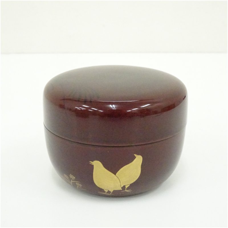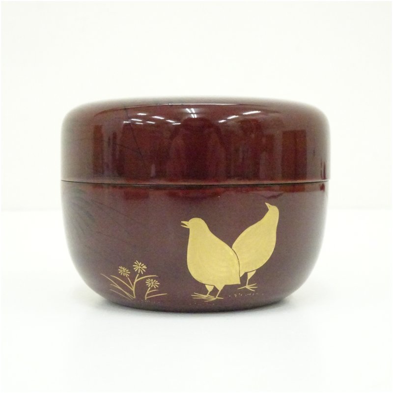 宗凌造 尾花に鶉蒔絵溜平棗(共箱) [13-251112c-069a]