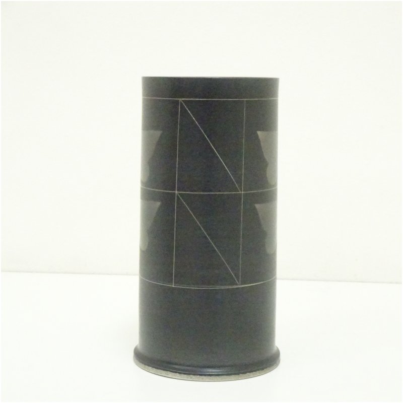 洞山窯 亀井勝造 黒滋釉花入(共箱) [13-250616c-059a]