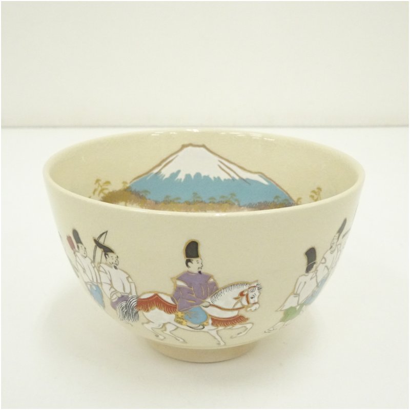 京焼 加藤藤山造 色絵流鏑馬茶碗(箱付) [09-251113b-013a]
