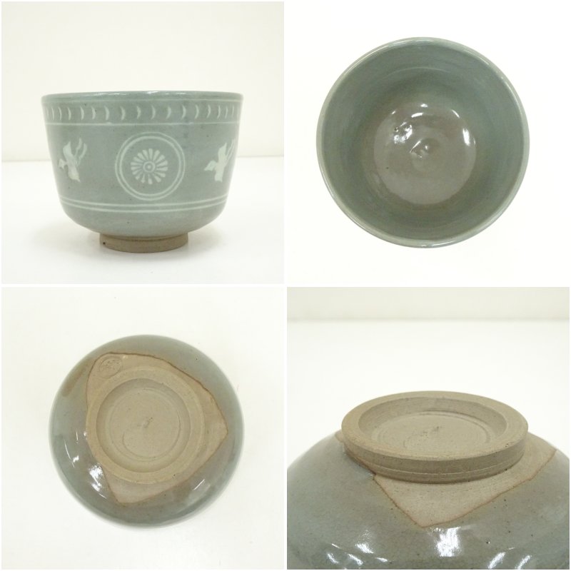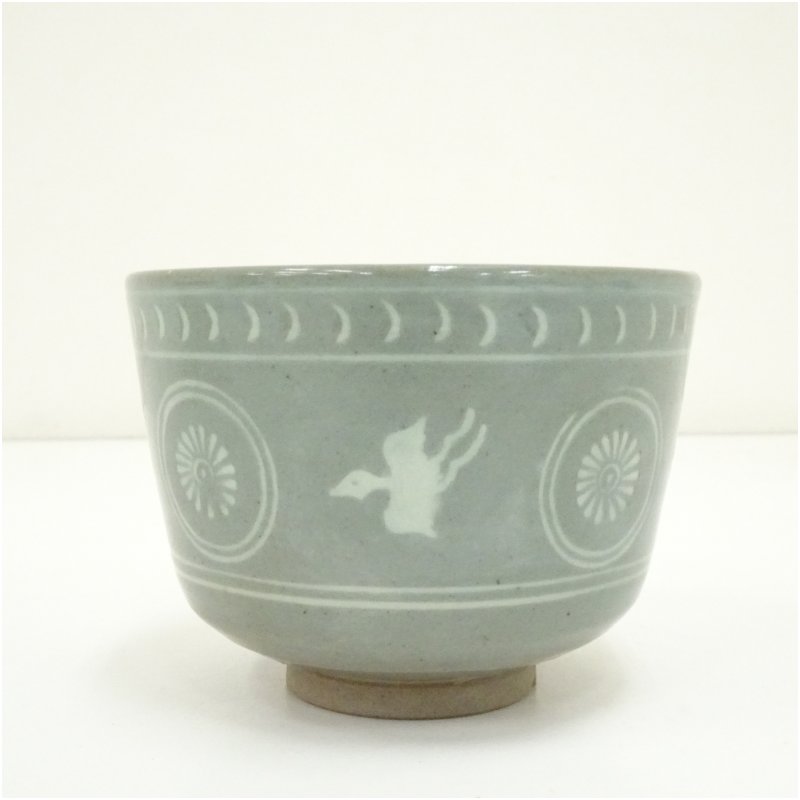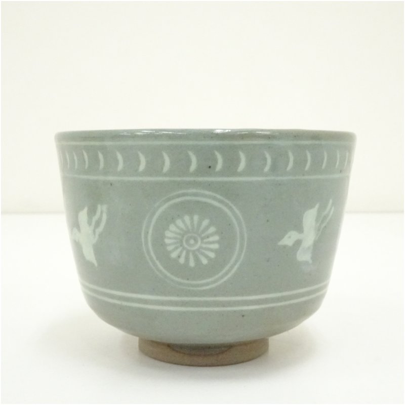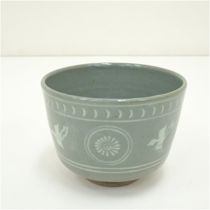京焼 宮本翠浩造 青磁狂言袴筒茶碗(箱付)