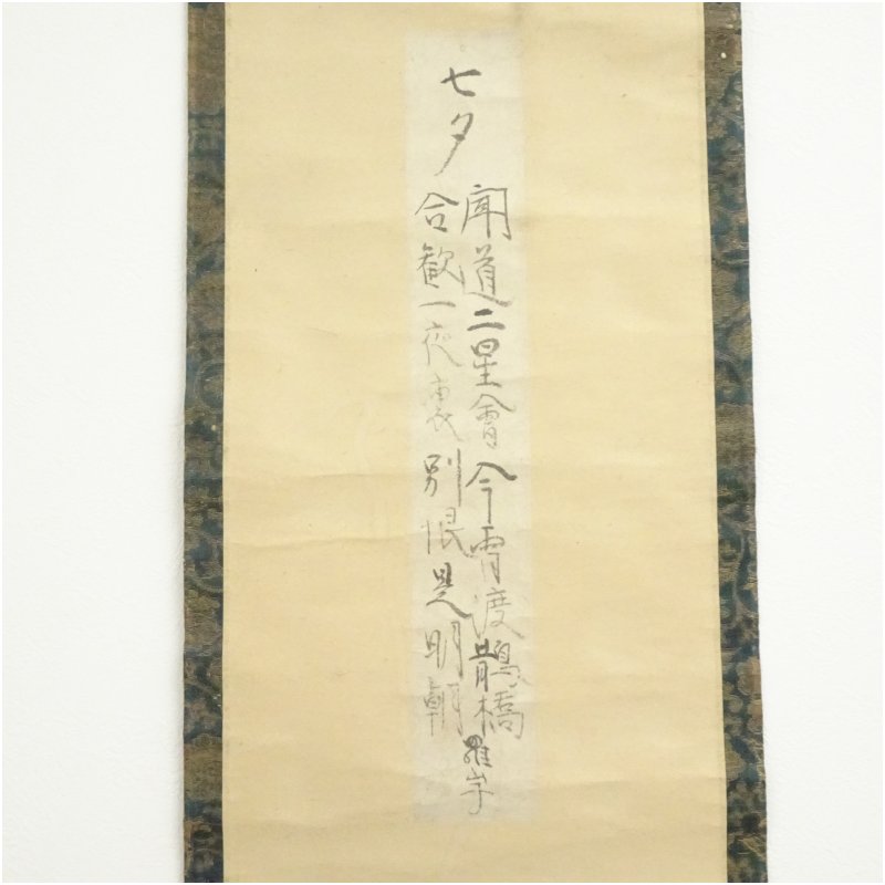 江戸前期 林羅山筆 七夕 肉筆短冊掛軸(保護箱) [14-251113b-025a]